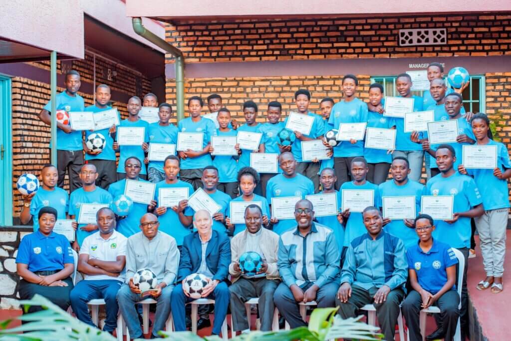 A proud moment was celebrated today as 33 coaches received their CAF D License Certificates after completing training organized by Ambassadors Group Rwanda Ltd (AGR Ltd) in partnership with the Rwanda Football Federation (FERWAFA).